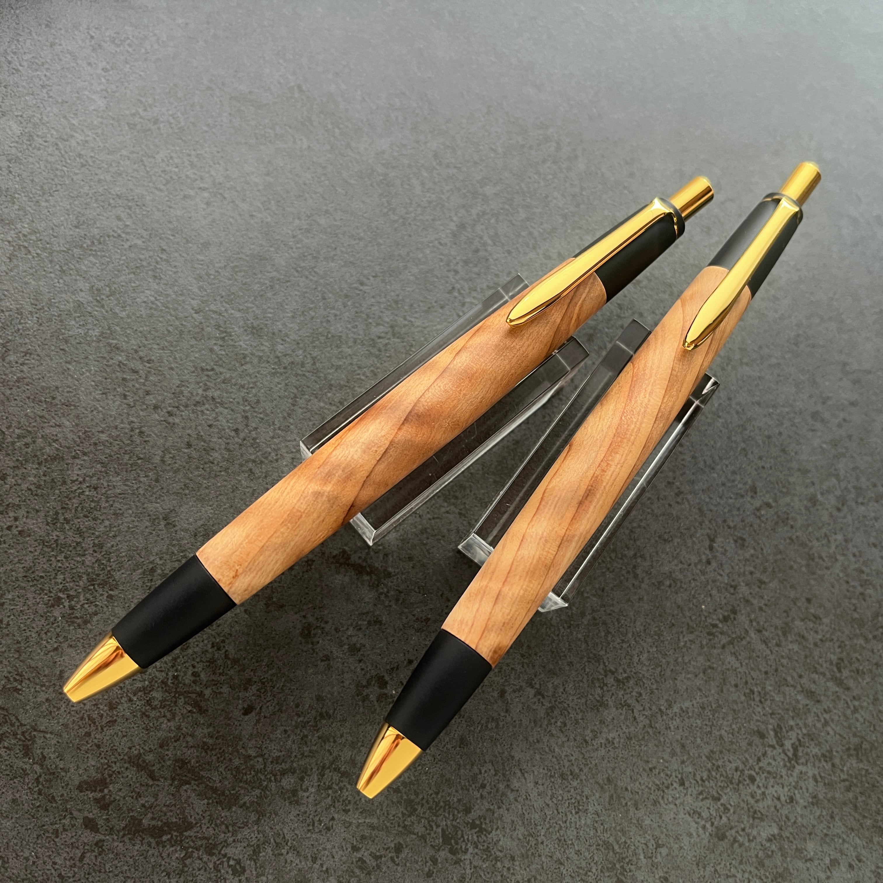 木軸の上から下まで虎杢が含まれているので経年変化によってどのような杢に育っていくのかお楽しみいただきたい木軸ペンとなります。